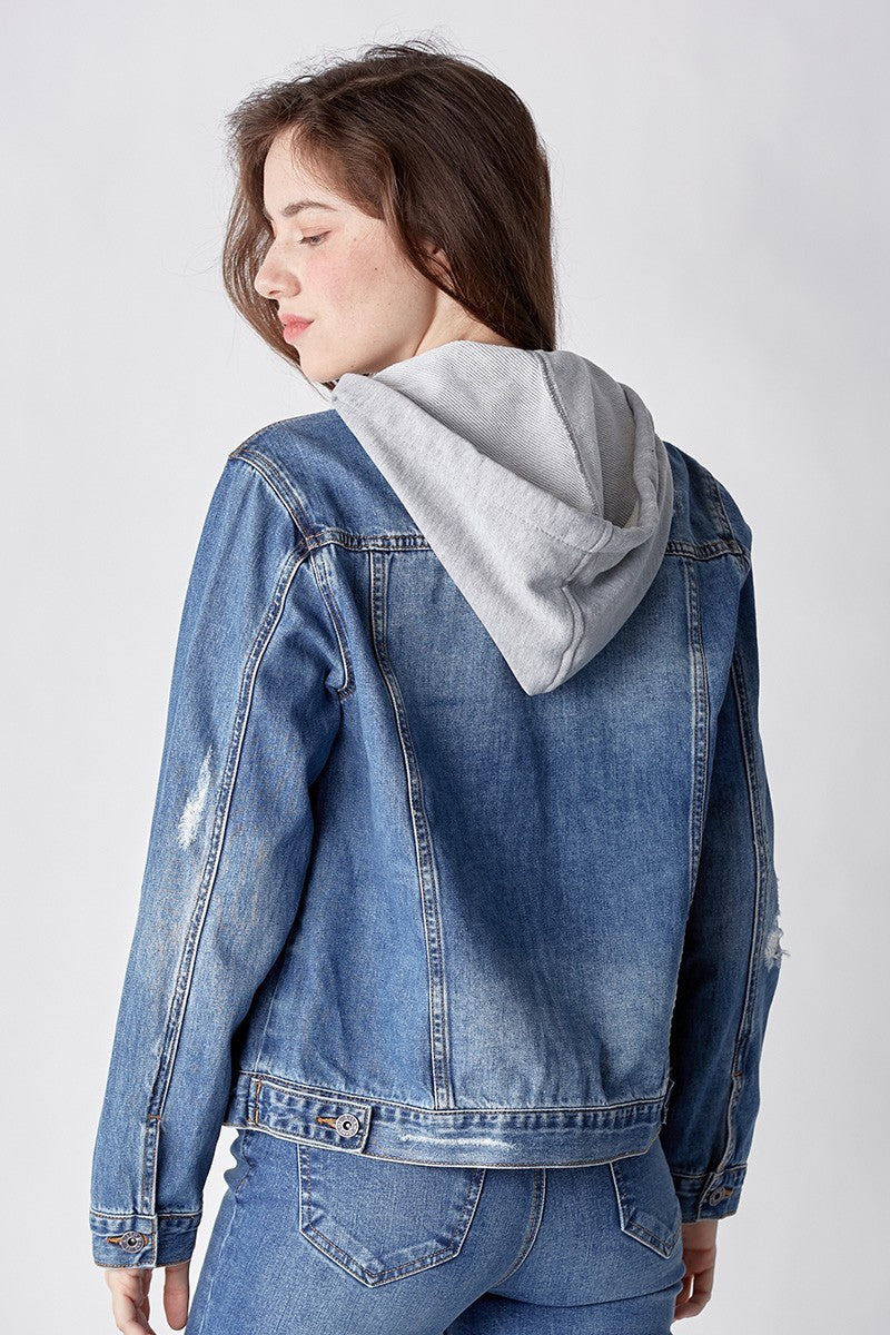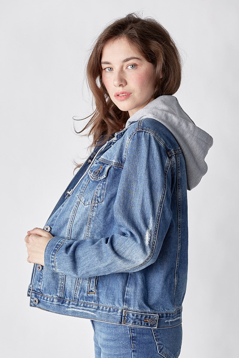 The denim jacket that does it all. This classic relaxed fit style features detailed grindings for that perfectly worn-in look and a detachable terry hoodie for extra versatility. Wear it with the hood for a sporty, laid-back vibe, or remove it for timeless denim jacket style. Made from 100% cotton, this piece is durable, breathable, and built to last season after season.