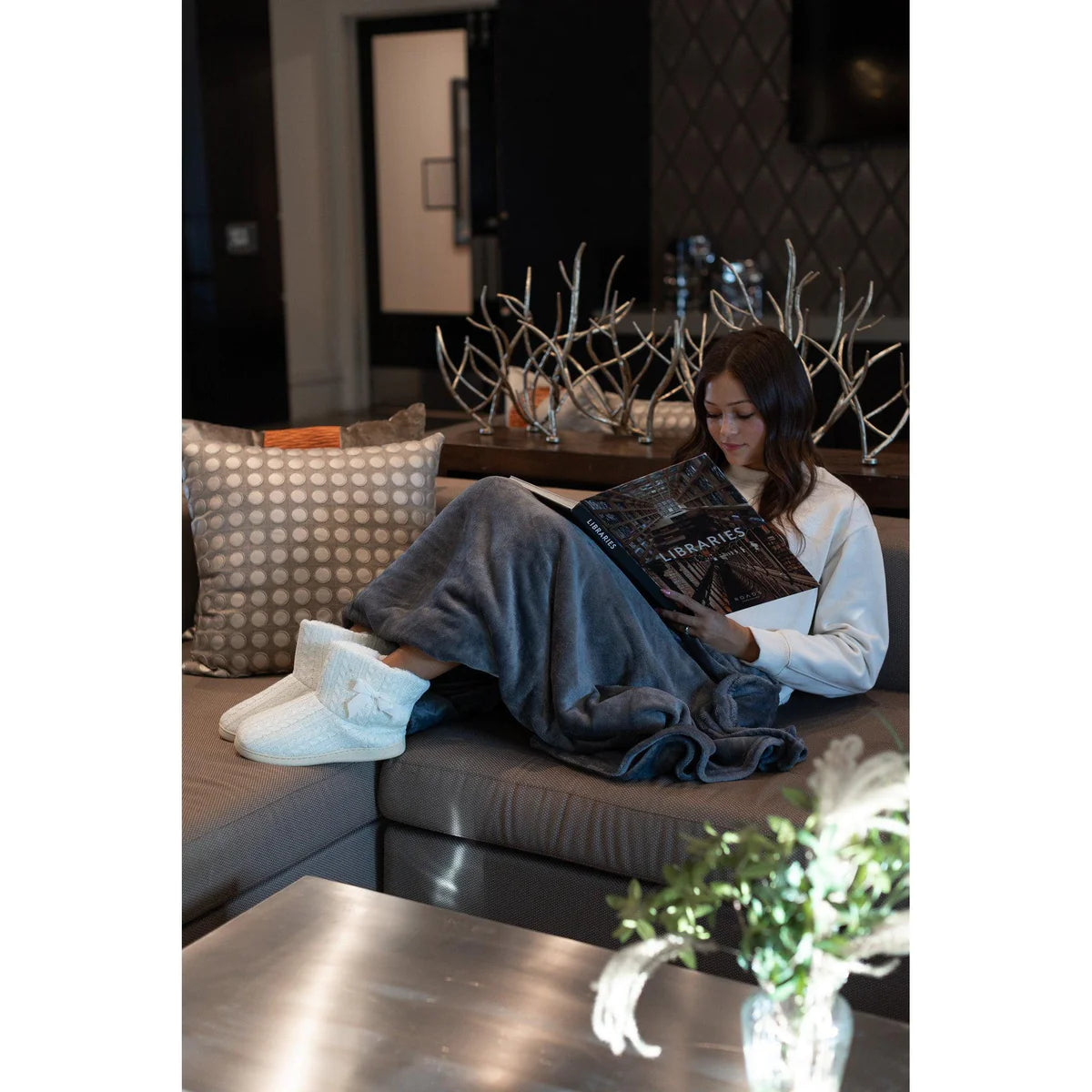 This bootie is available in either gray or Winter white, each of which adds a beautiful touch to any outfit. Whether you want to stay cozy or chic, these booties are perfect for any occasion!