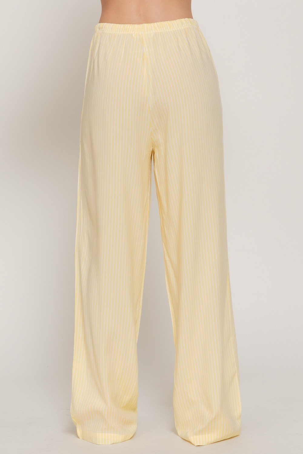 Sunshine in pant form. These breezy wide-leg pants are everything a spring wardrobe needs — light, airy, and effortlessly chic in the most dreamy shade of butter yellow. A delicate white pinstripe runs through the fabric, adding just the right amount of visual interest without taking away from that soft, sun-kissed vibe.