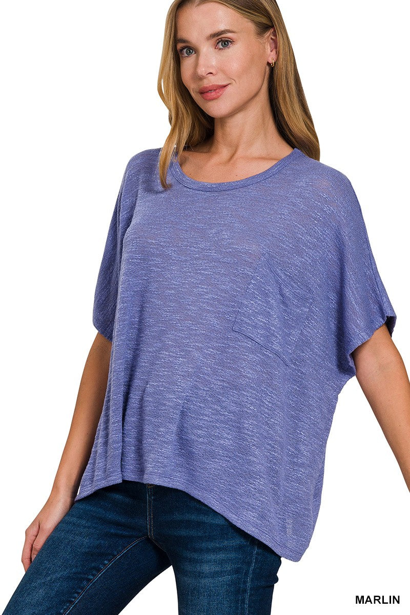 This Collins Oversized Hacci Top offers effortless style and comfort. Made from slub hacci fabric, it boasts an oversized fit for a relaxed feel. The convenient pocket adds functionality to this trendy top. Perfect for any occasion, this versatile top is a must-have addition to your wardrobe!