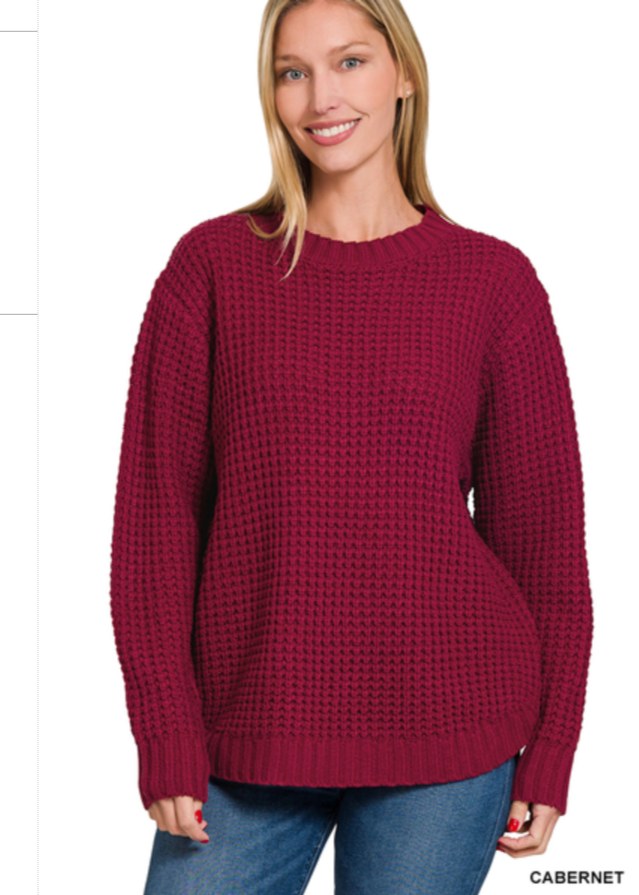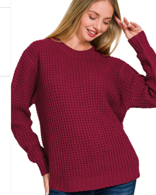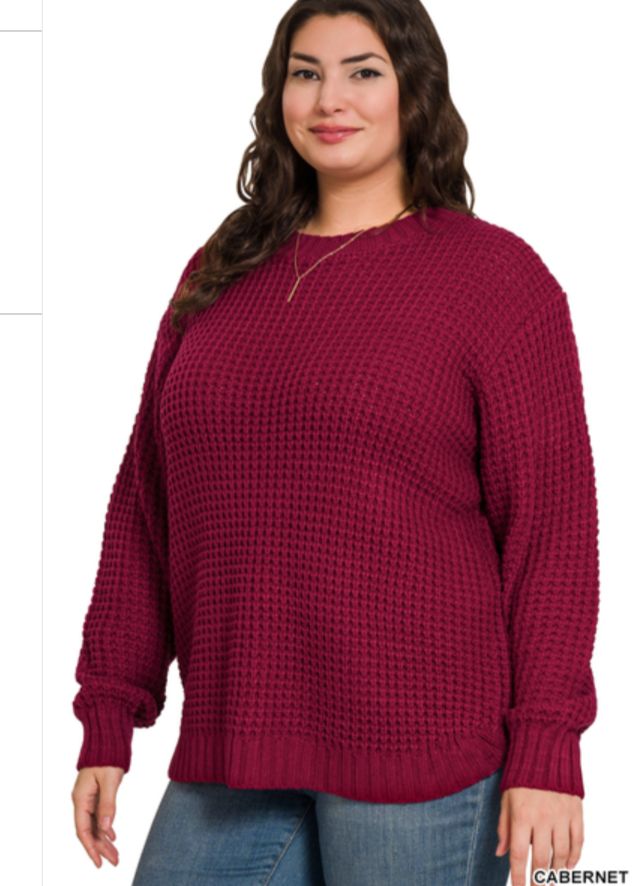 Feel effortlessly chic and cozy in our Emma Hi-Low Waffle Sweater! With a flattering hi-low silhouette and round neckline, this sweater is perfect for any occasion. The curved hem adds a touch of uniqueness to this classic waffle knit, making it a must-have for your wardrobe. Stay comfortable and stylish all day long!