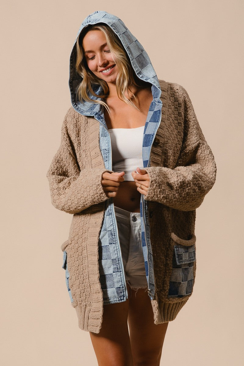 Comfy meets cool in this oversized washed checker denim zip-up cardigan. With its unique denim checker pattern and cozy knit design, it’s the perfect mash-up of edgy and laid-back. The oversized fit gives it that effortless, slouchy vibe while the zip front makes layering a breeze. Finished with roomy pockets and chunky ribbed trim, this sweater cardigan is as practical as it is statement-making.