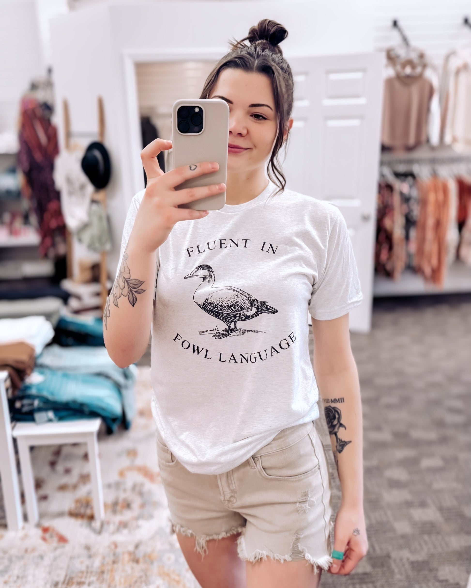 For the sass-masters, sarcasm lovers, and bird-brained humorists—meet your new favorite tee. The Fluent in Fowl Language graphic tee is the perfect blend of vintage-inspired design and modern-day mood. Featuring a hand-drawn duck and cheeky curved typography, this tee says what you’re probably thinking... just with feathers.