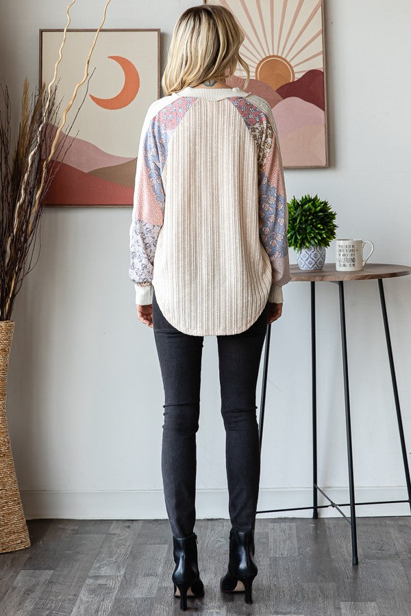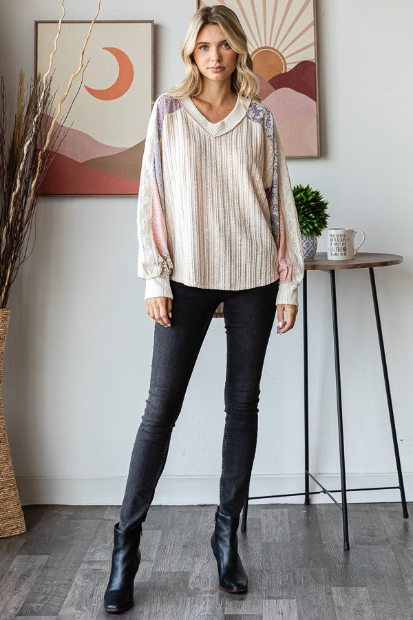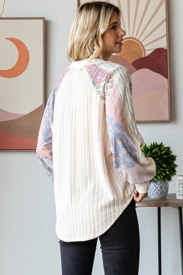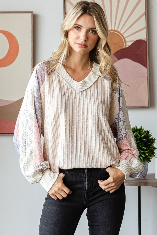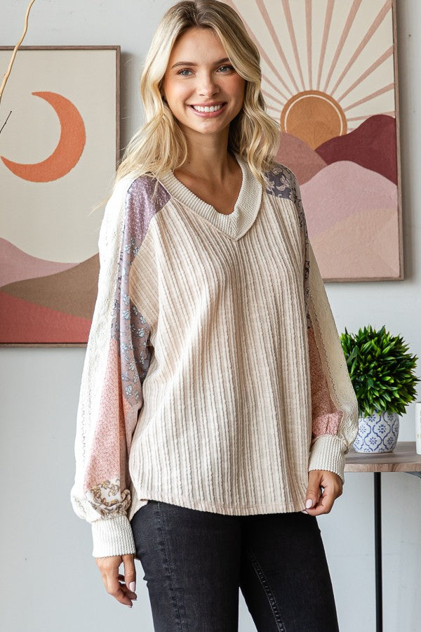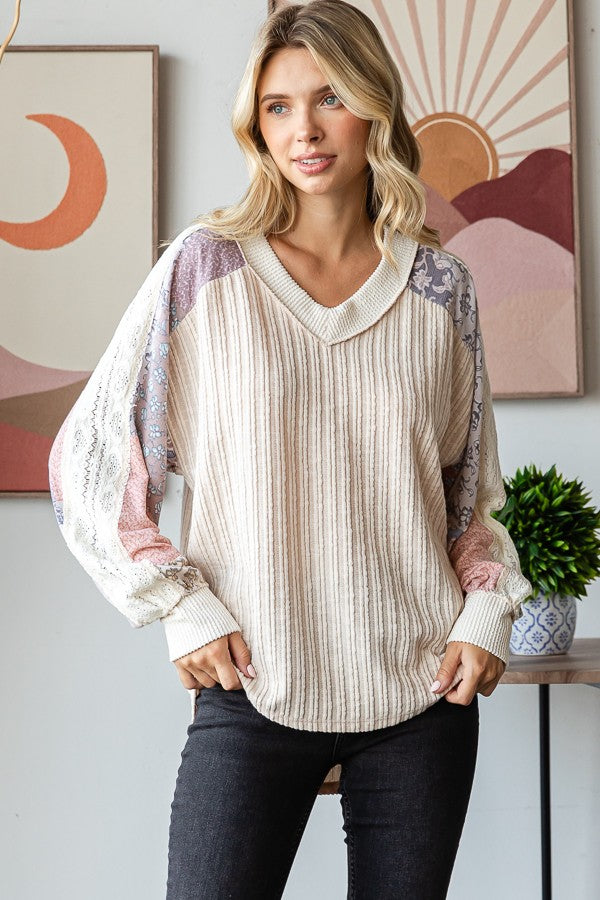 Izzy Lace Contrast Long Sleeve | Oatmeal