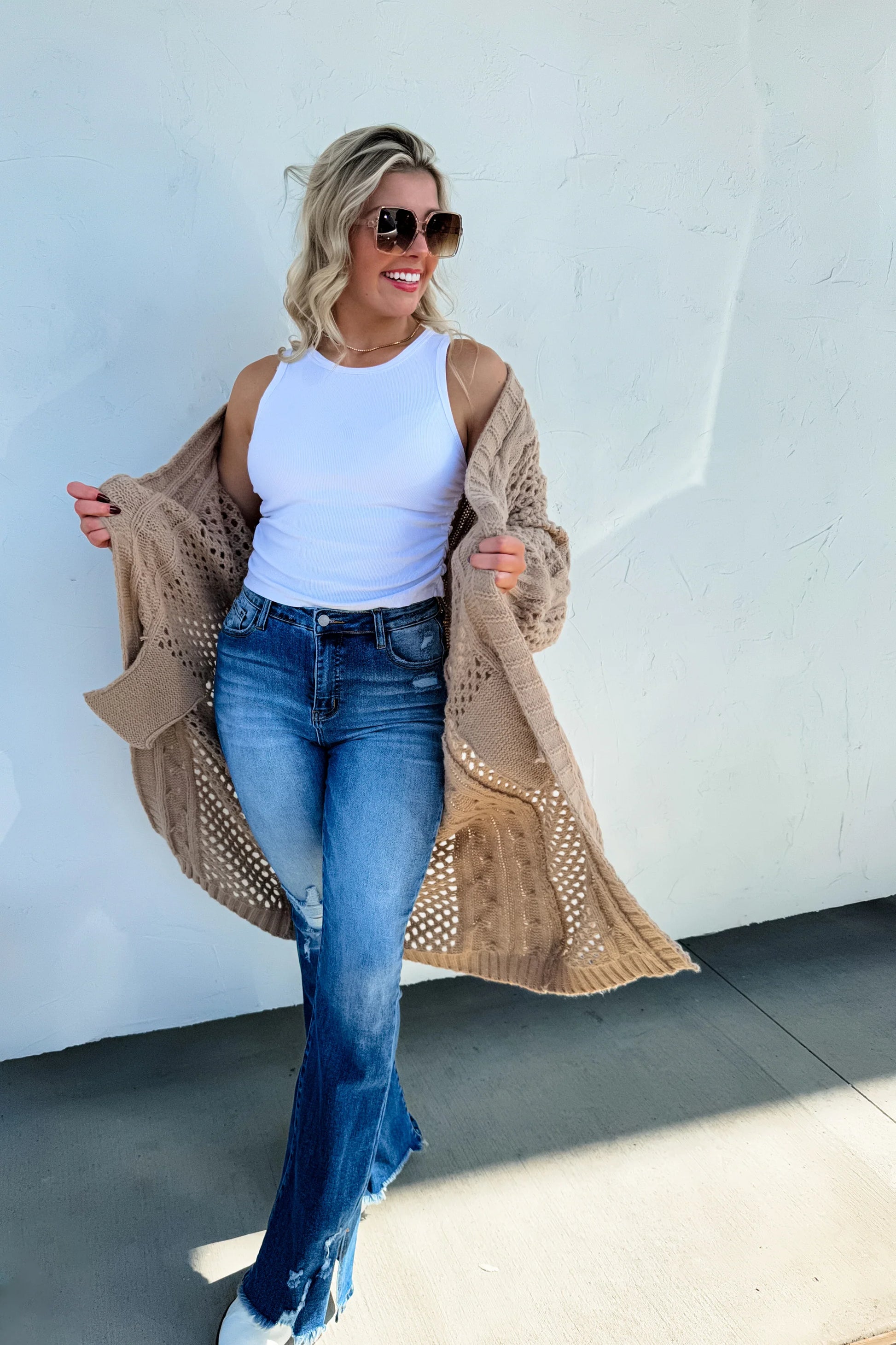 Wow, these cardigans are a total stunner! You will get compliments where-ever you go! This sweater knit fabric cardi features side pockets and is perfectly paired with jeans or shorts and a tank!