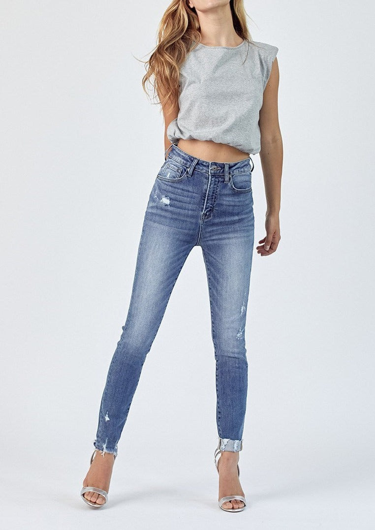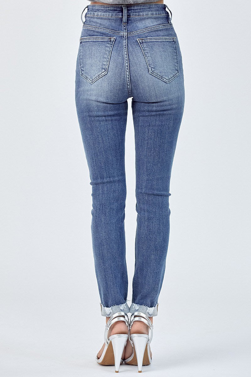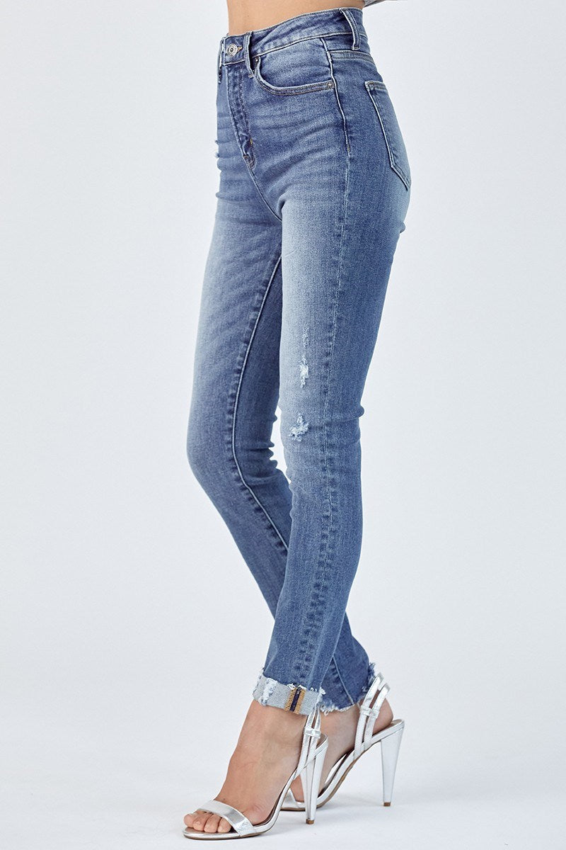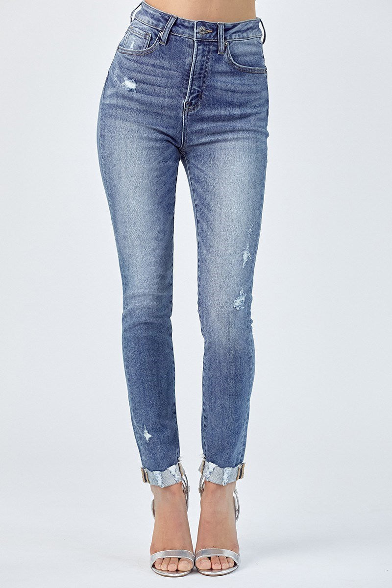 Make a statement with the Ruthie Skinny Cuffed Jeans! These stylish jeans are carefully constructed with a vintage-washed finish and high-rise waist for a flattering silhouette. With its full-length, skinny fit and optional cuffs, these jeans will be the perfect addition to any outfit. Take your look up a notch with these unique cuffed jeans!
