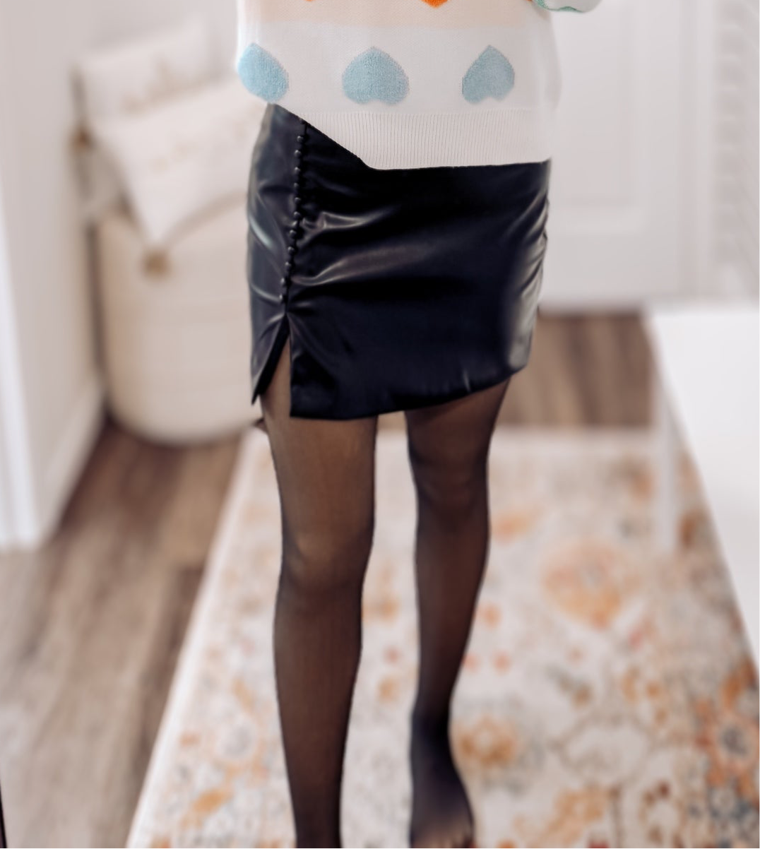 Transform your wardrobe with the Sophia Faux Leather Skirt! The short fitted design, button trim, and front slit add edgy charm, while the side zipper ensures a comfortable fit. Made with high-quality faux leather, this black skirt is a versatile and stylish addition to any outfit.
